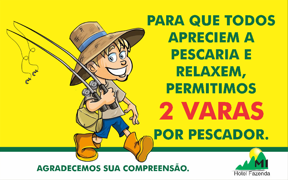 - Senhores Pais, para sua segurança informamos que não é permitido o uso do Lago de Pesca por menores de 18 (dezoito) anos sem o acompanhamento dos pais e/ou responsáveis;